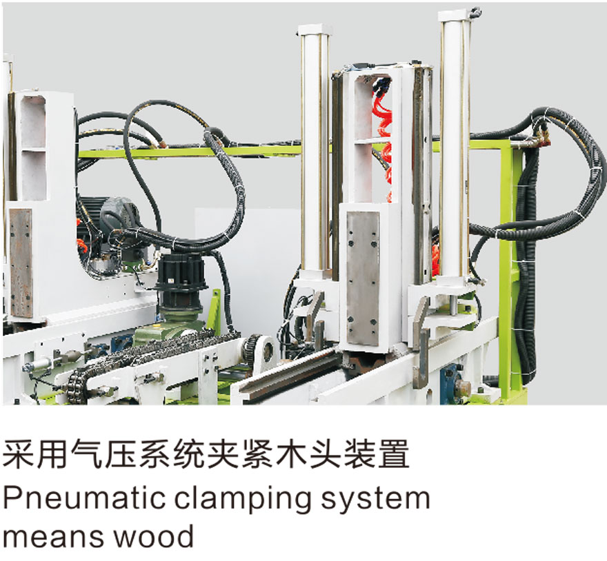 標(biāo)配采用氣壓系統(tǒng)夾緊木頭裝置,也可以根據(jù)客戶需求更改為液壓系統(tǒng)裝置;