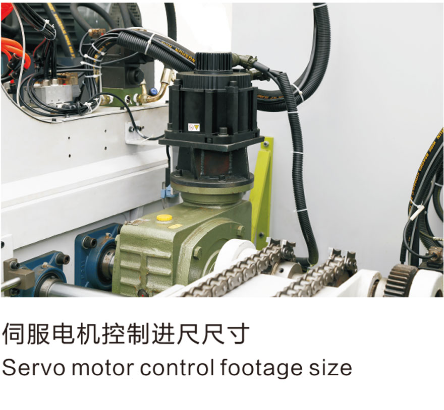 采用齒條進(jìn)尺,結(jié)合伺服電機(jī)控制從而能快速精準(zhǔn)達(dá)到所要進(jìn)尺的尺寸。