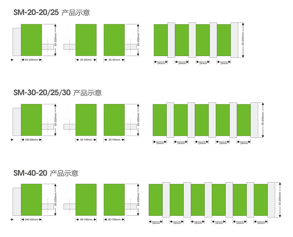 | 型號 | SM-20-20/25 | SM-30-20/25 | SM-30-30 | SM-40-20 |